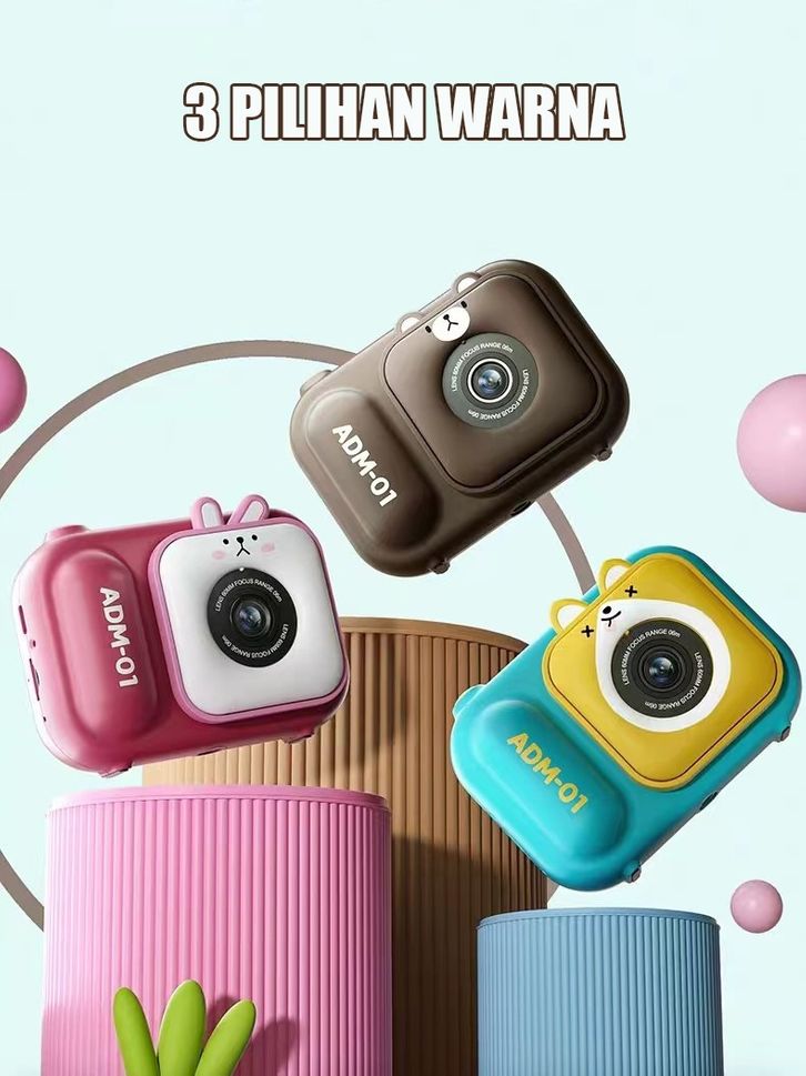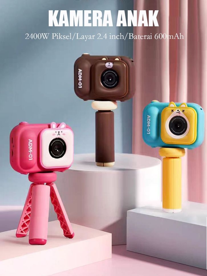 Kamera Anak Tripod Stand HD Kamera Digital Motif Kartun Lensa Ganda 1080P 32GB