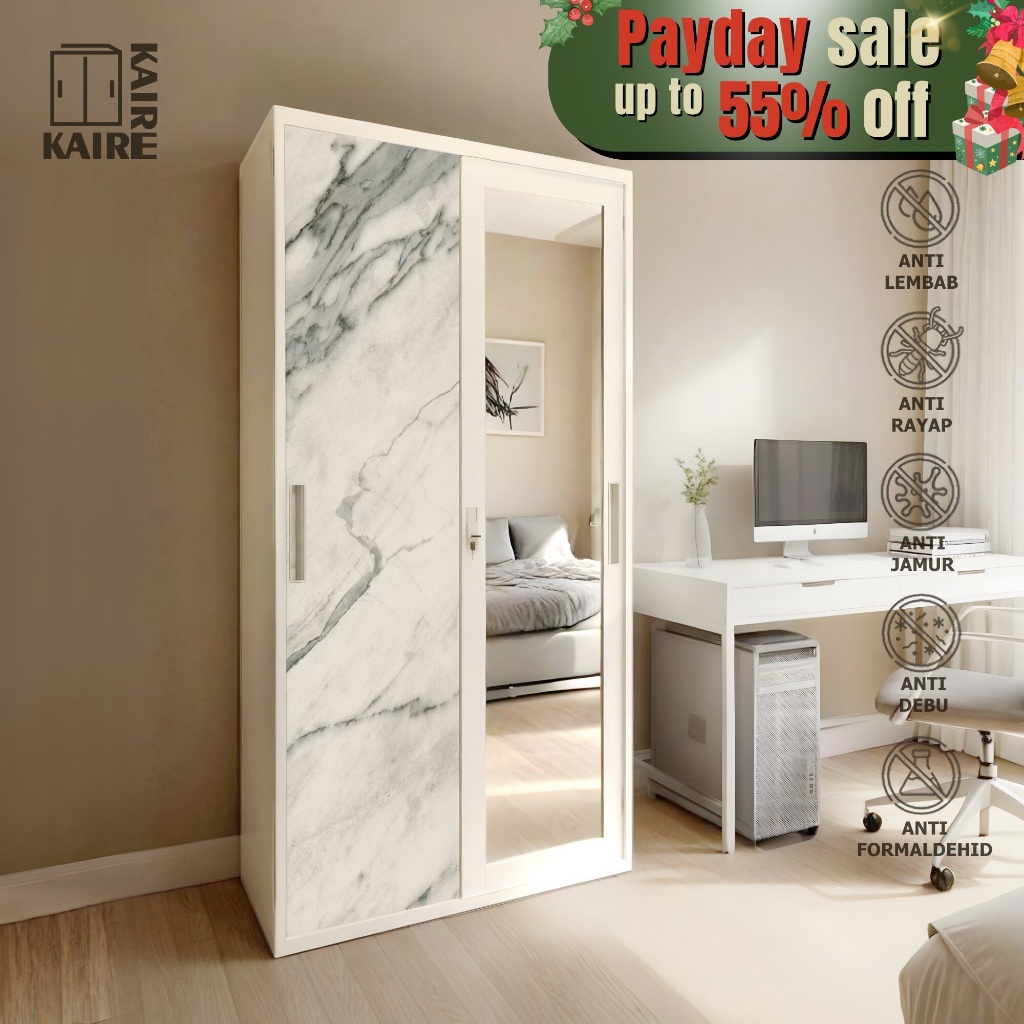 Lemari Pakaian Besi 2 Pintu Sliding Jumbo | 120cm Rak Baju Lemari Baju Besi Dilengkapi Dengan Kunci Lemari Pintu Geser