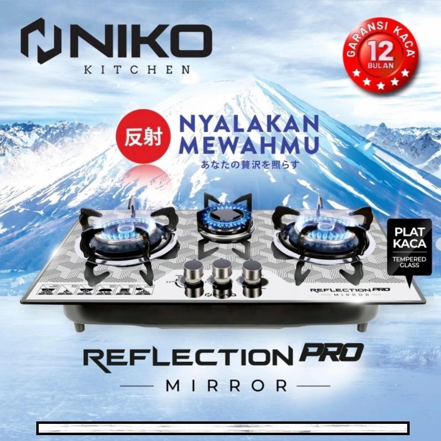 Pro Phantom Kompor Gas Kaca 3 Tungku Reflection NIKO Pro Phantom / kompor tanam / kompor meja