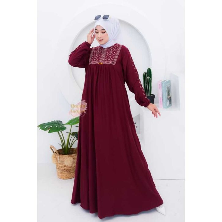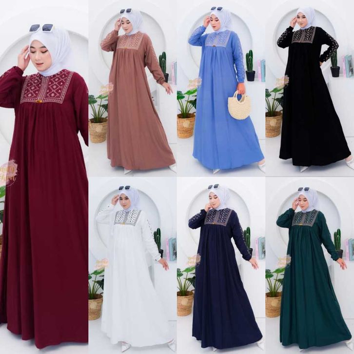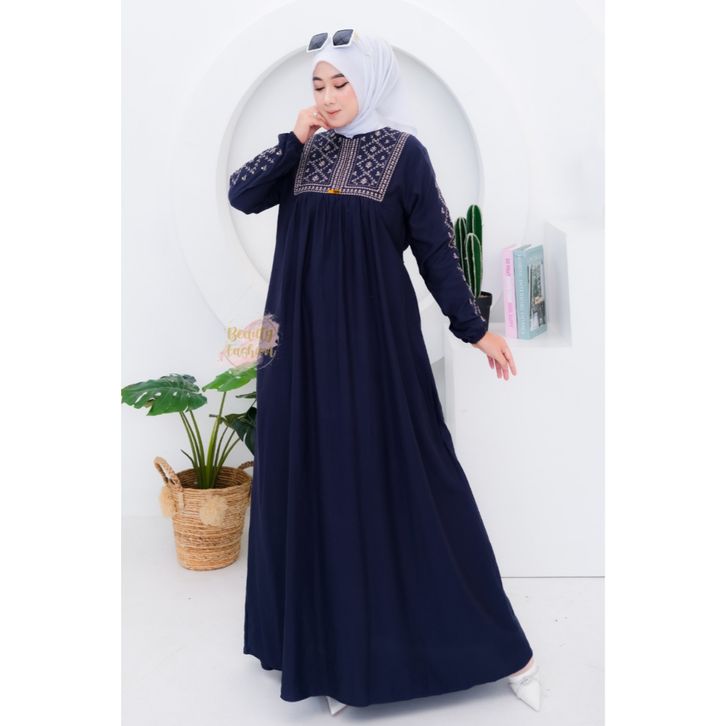 gamis rayon twill bordir wanita kayla premium terbaru busui friendly dress motif model kekinian