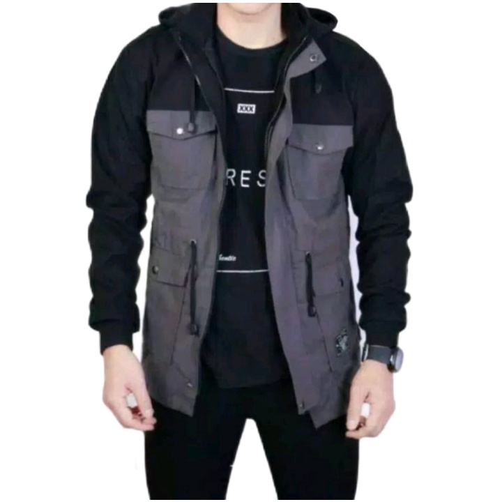 Jaket Kombinasi Pria 2 Warna Hitam Abu Ukuran L Sampai XXL