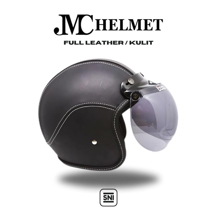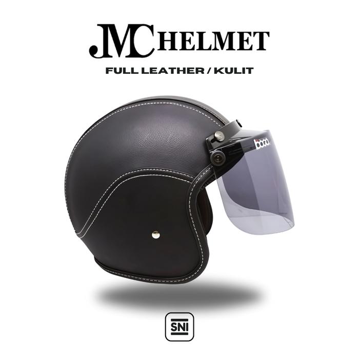 Helm Motor Bogo Retro Kaca Bogo Original Full Leather Black SNI BOGO ORIGINAL EDITION Pria dan Wanita