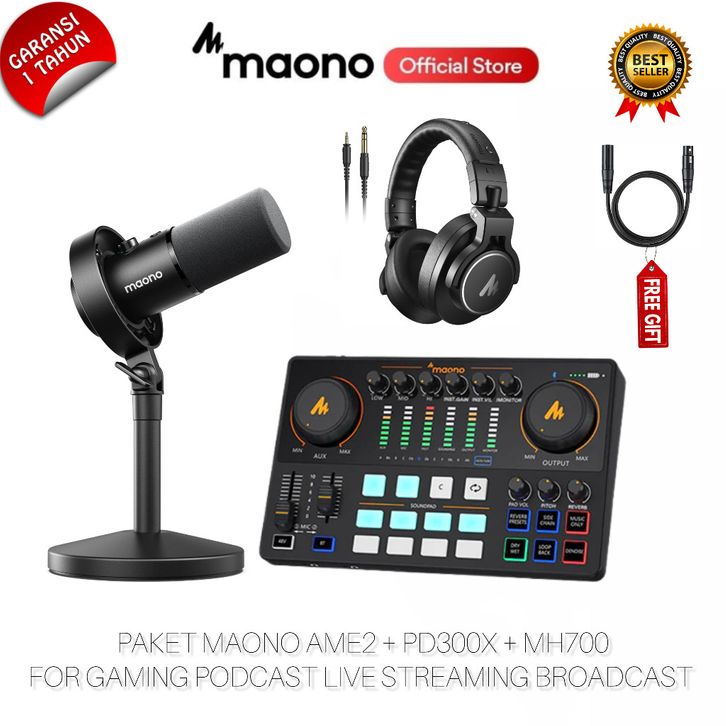 MAONO AME2 Gen1 Paket Soundcard Microphone PD300X Dynamic with MH700 Headphone for Podcast Streaming