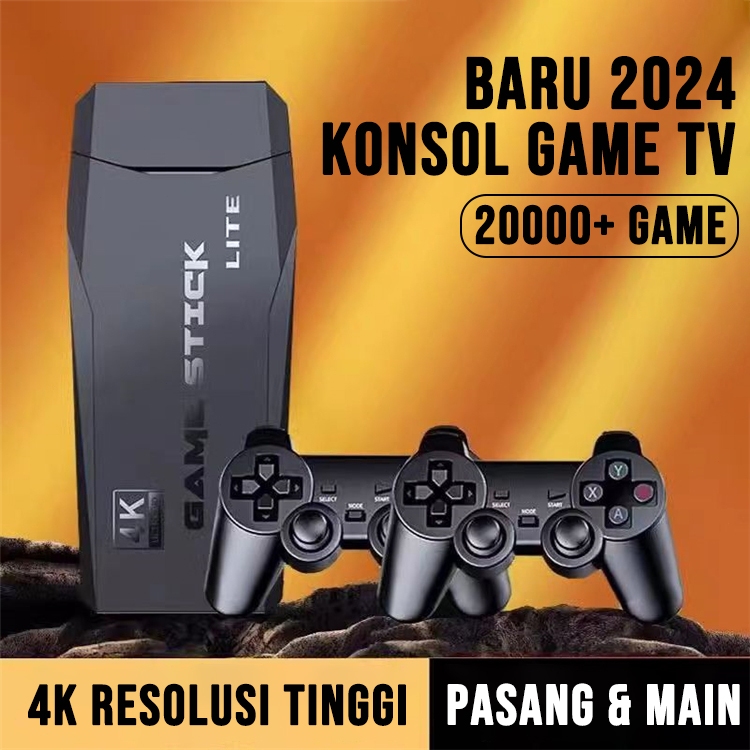 Game Stick 4K | 64GB dengan 20300 game bawaan | Stik Game Nirkabel Ganda | Sambungan Langsung ke TV HDMI | Konsol Game