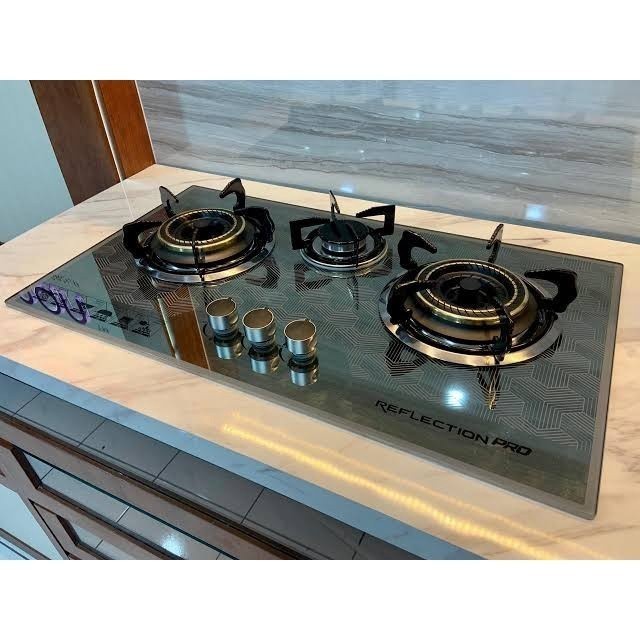 Pro Phantom Kompor Gas Kaca 3 Tungku Reflection Pro Phantom / kompor tanam / kompor meja / kompor rumah kompor kaca hita