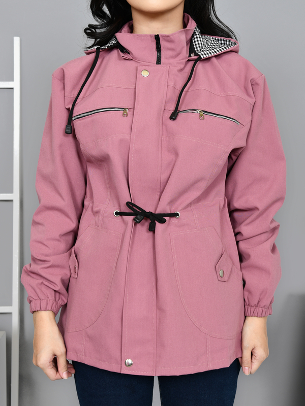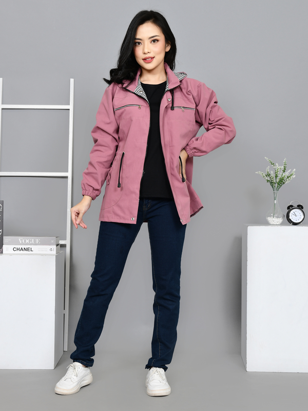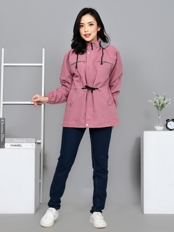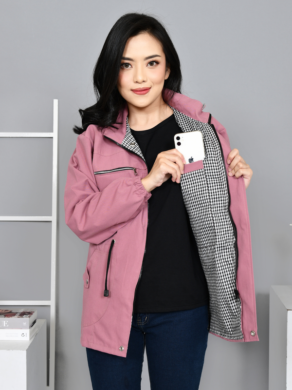 Jaket Parka Wanita Korean Style Bolak Balik Jumbo Warna Pink Dusty Ukuran M Sampai 4XL