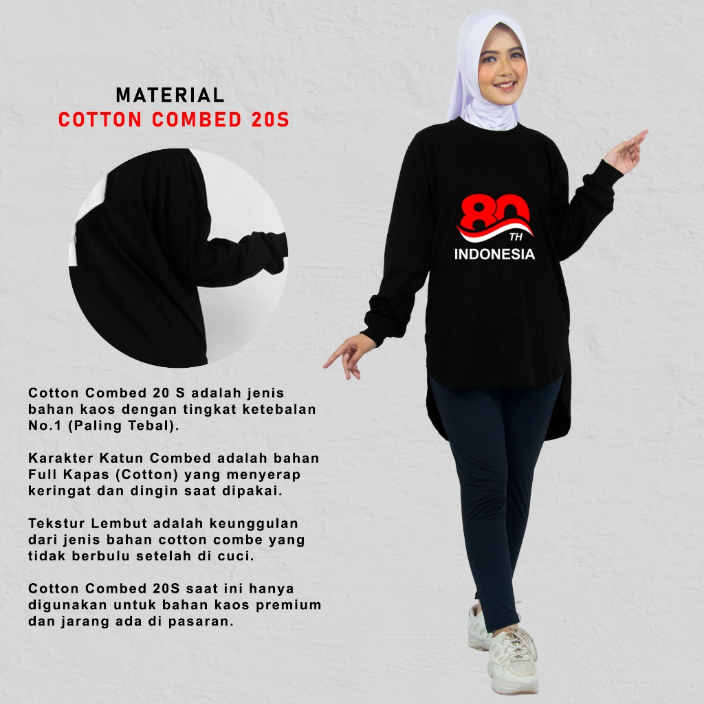 Kaos Merah Putih Wanita Lengan Panjang Kemerdekaan - Baju Agustusan RI 2025