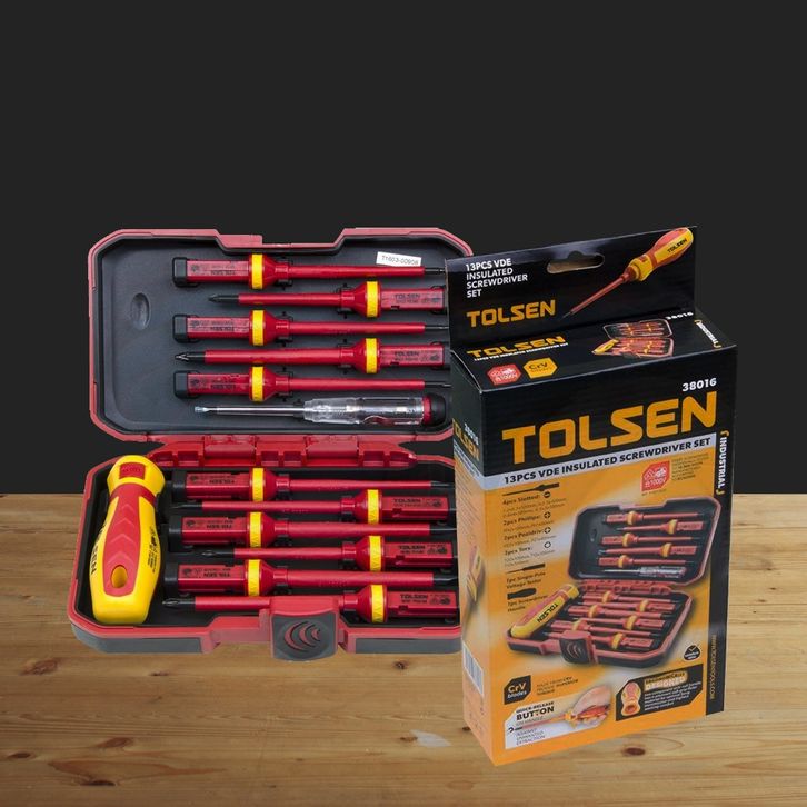 Terlaris 13 BUAH SET OBENG BERINSULASI VDE TOLSEN 38016 Keren