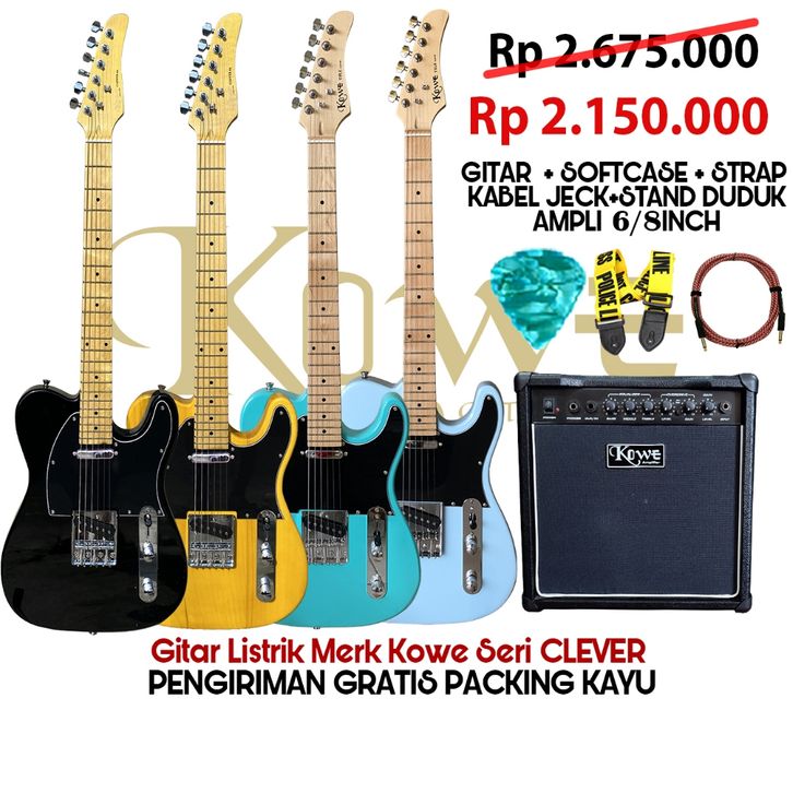 Paket Bundle Hemat Gitar Listrik/Gitar Elektrik Original Merk Kowe Original Seri Clever