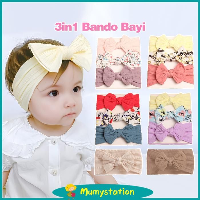 Mumystation Bandana Pita Bayi Set Isi 3 Ikat Kepala Kupu Kupu Bayi Anak Perempuan - C