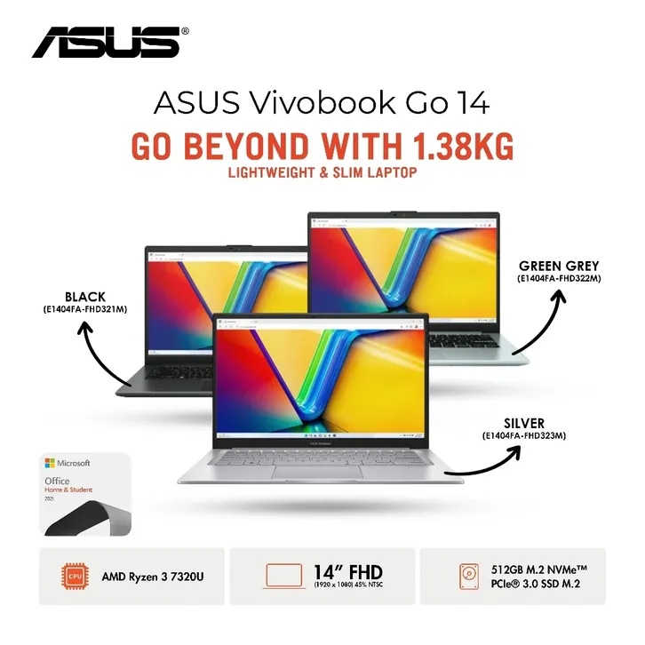 [Mall] LAPTOP ASUS VIVOBOOK GO 14 E1404FA RYZEN 3 7320 8GB 512GB WINDOWS 11 HOME + OHS 14.0 FHD +FINGER PRINT BERGARANSI
