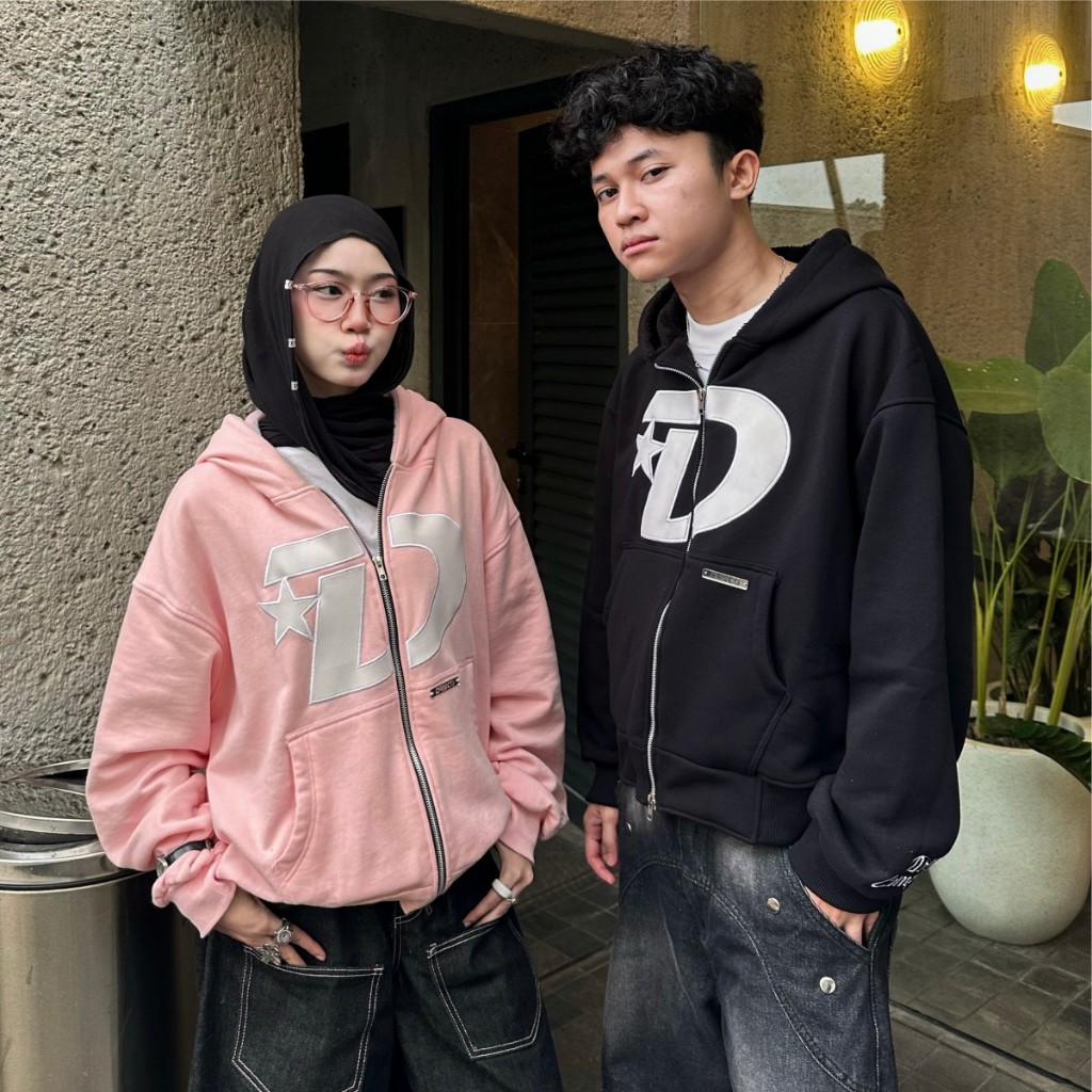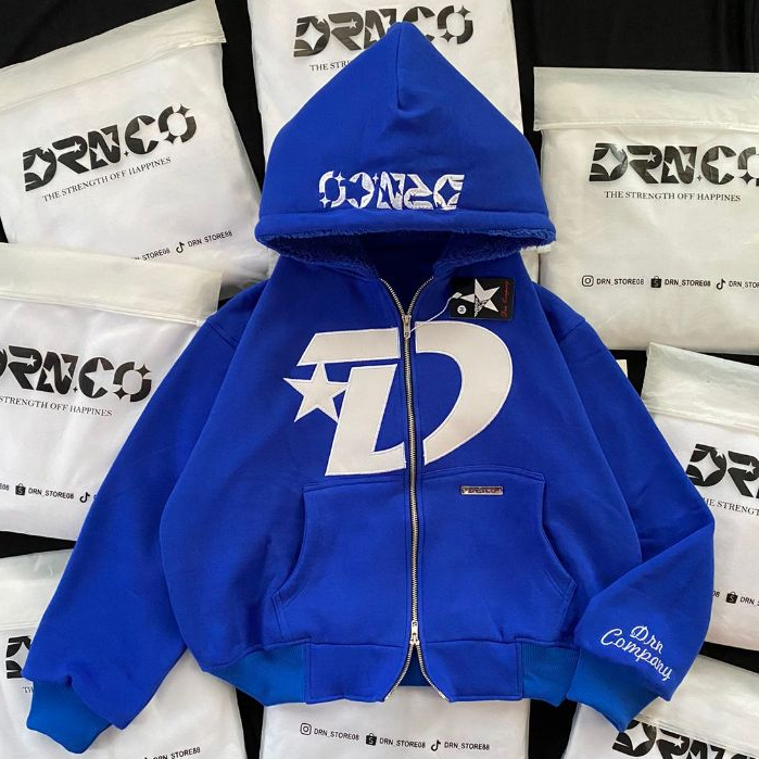 Boxy Zip Hoodie D Leather Bordir DRN.CO Jacket Resleting Ootd Streetwear