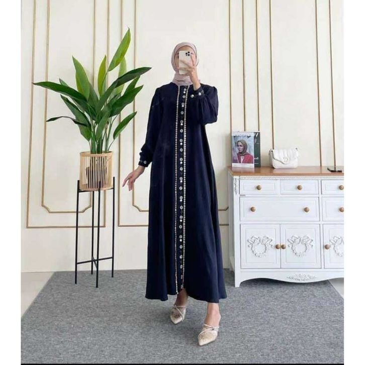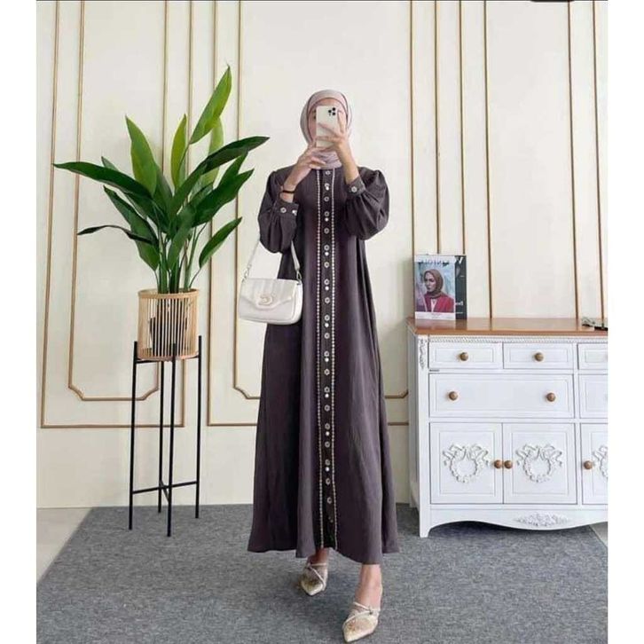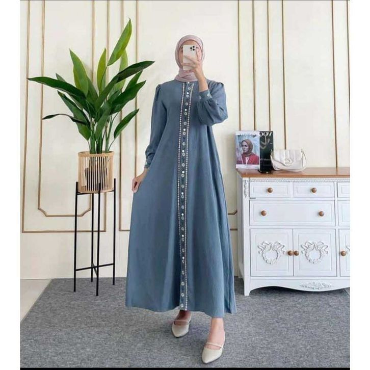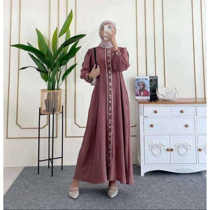 dress gamis wanita muslimah lebaran terbaru bahan crinkle airflow bordir embodery asli
