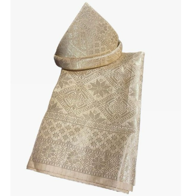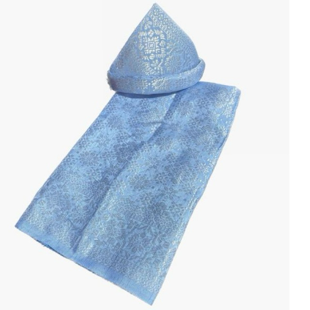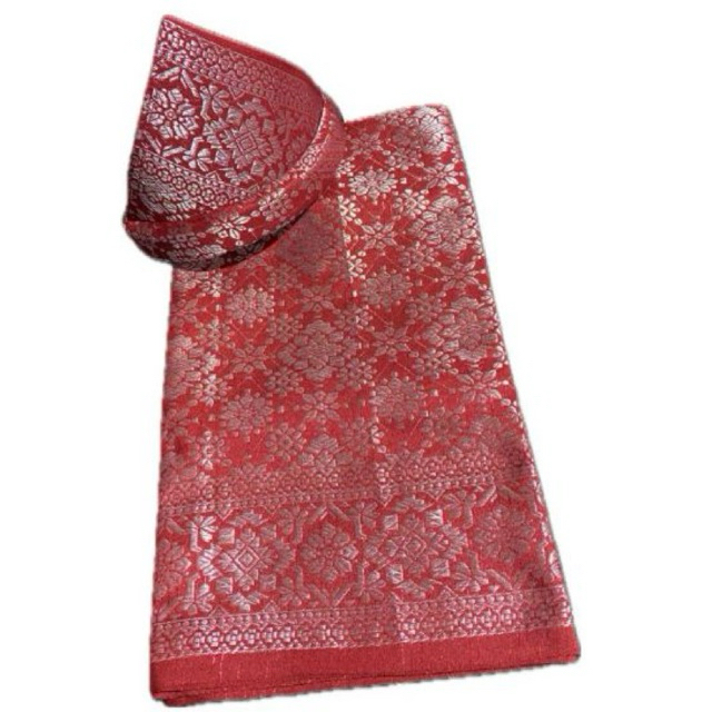 Setelan Tanjak dan Kain Rumpak Sarung Songket Khas Palembang Asli Adat Melayu ern