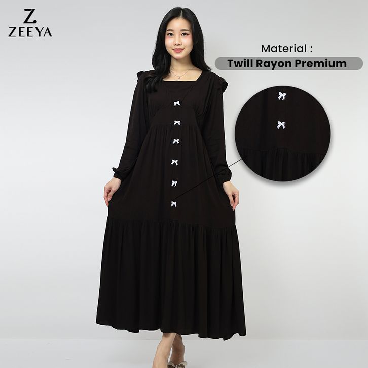 zeeya collection fuji midi dress baju wanita bahan rayon twill premium