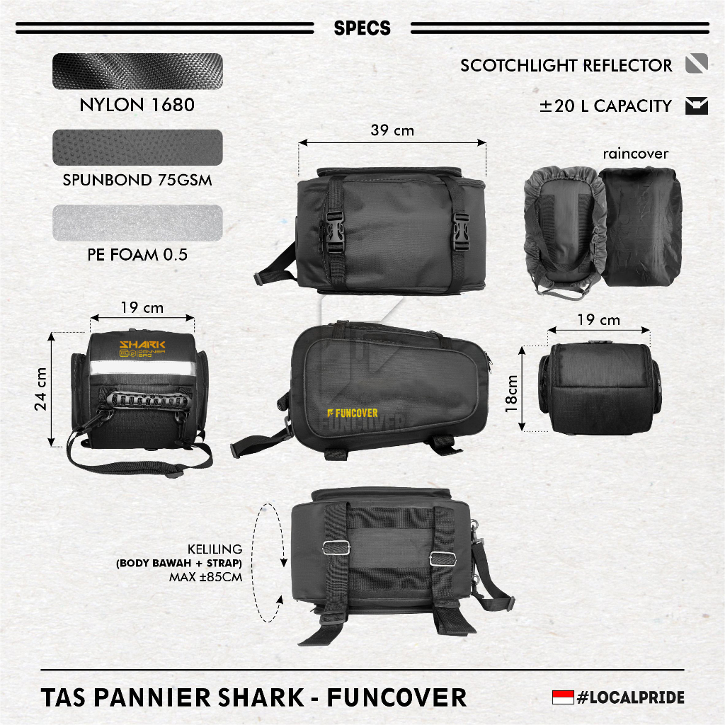 Tas Motor Touring Box Belakang Jok Pannier Tailbag SHARK by FUNCOVER