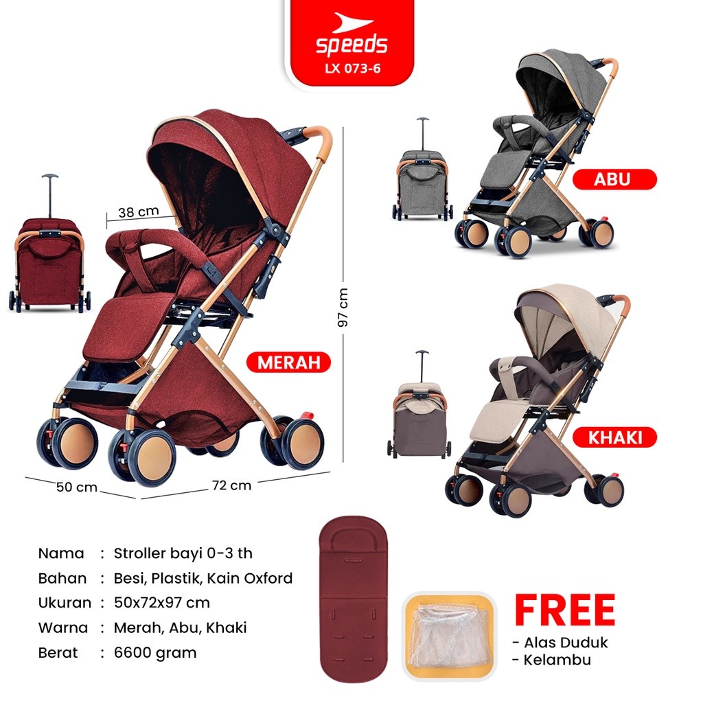 SPEEDS Stroller Anak Newborn Baby Lipat Premium Portabel Bayi Stroller Kereta Dorong Bayi 073-6