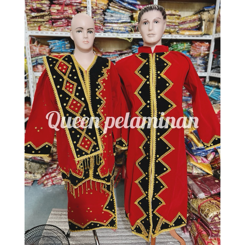 Baju Adat Nias Spasang Dewasa Bludru Merah Cewek