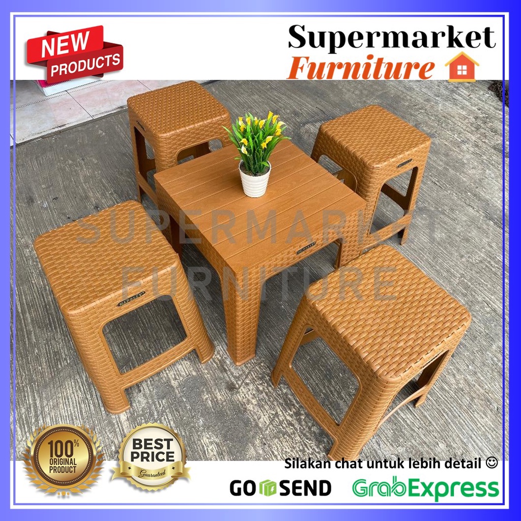 Kursi Teras Plastik 1 Set 4 Kursi Napolly Big 3R3 Set Meja Mapan 45 Set Kursi Santai Taman Bangku Plastik Modern Napolly
