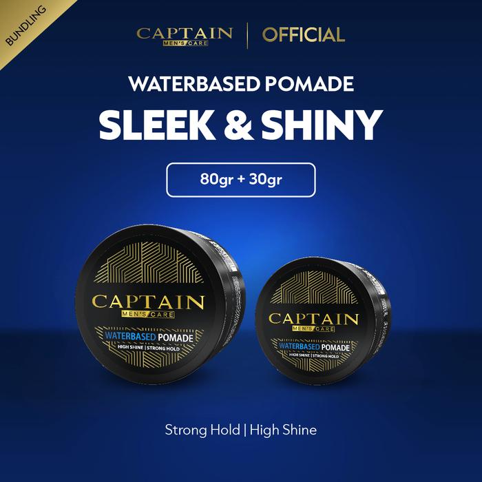 Special Bundling - Captain Men's Care Waterbased Pomade Reguler + Waterbased Pomade Travel Size Pria Styling Rambut