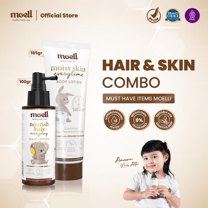Moell Special Bundling Body Lotion 185gr & Hair Lotion 100ml #Skincare Baby #Natural Organic