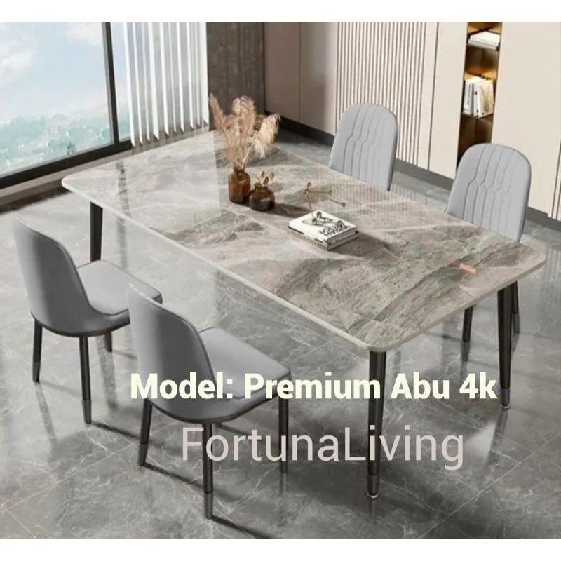Meja Makan Marmer Minimalis Set 4 Kursi Rangka Besi Stainless Dining Table