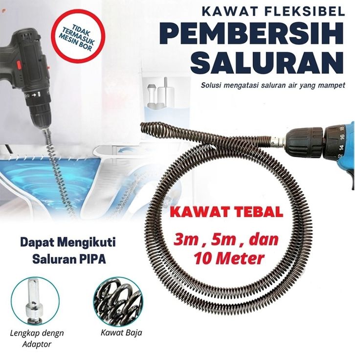 PROMO KONGDO Pipe Cleaner Kawat Pembersih Saluran Pipa Mampet Dengan Adaptor Bor