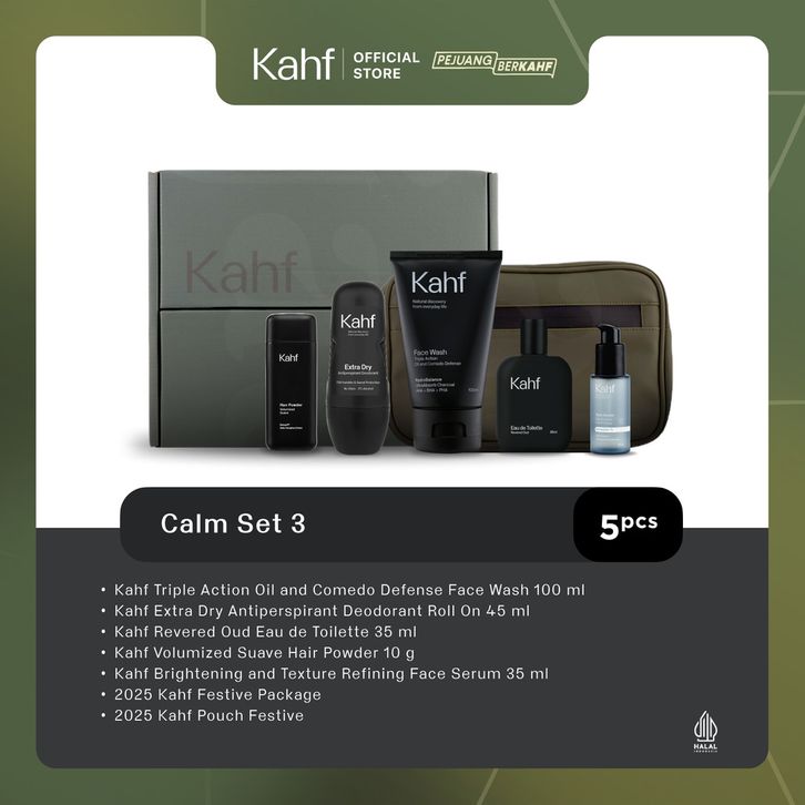 [FREE EXCLUSIVE BOX FOR GIFT] Kahf 5in1 Grooming Men Essential Set 4 (Face Wash, Deodorant, Serum, EDT, Pomade/Hair Powd