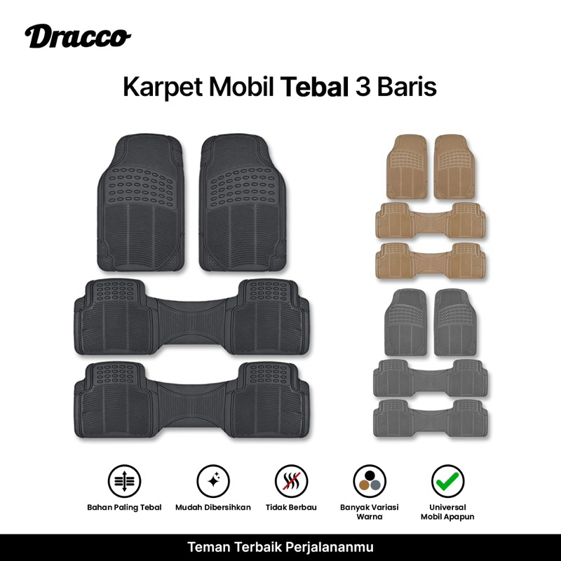 [Star] Karpet Mobil 3 Baris DRACCO Tebal – Universal, Anti Slip, Mudah Dibersihkan, Tidak Berbau, Awet