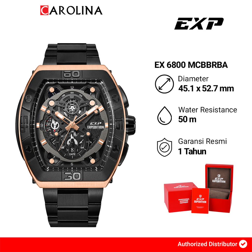JAM TANGAN PRIA EXPEDITION EXP CHRONOGRAPH EX 6800 MCBBRBA BLACK COWOK CASUAL FORMAL BRANDED ORIGINAL OFFICIAL STORE