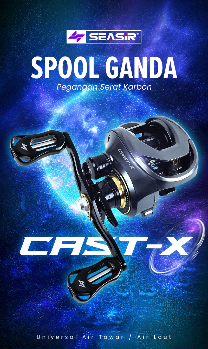 SEASIR CAST X Reel BC Baitcasting 7.3:1 SW | 2 Spool | Kanan/Kiri | Carbon Handle | Max Drag 8.5Kg | Kuat & Awet