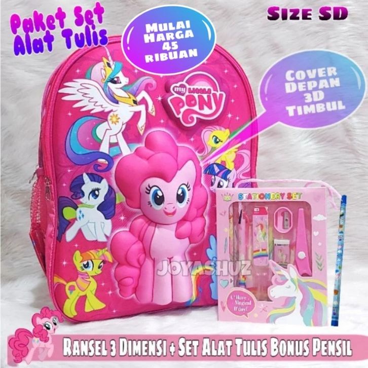 Tas Sekolah Anak Perempuan Pony 3 Dimensi Gratis Set Alat Tulis / Tas Karakter Anak - Ransel Anak TK - Joyashuz