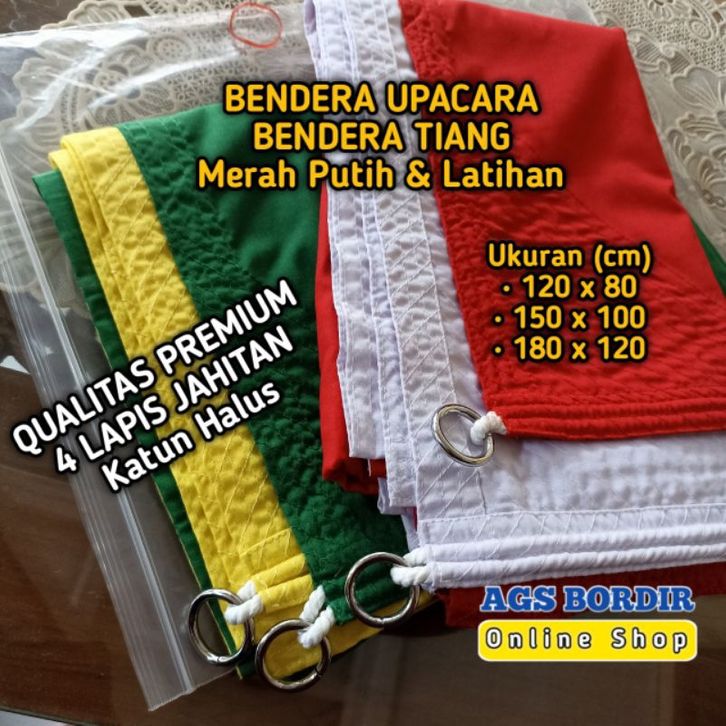 Bendera upacara merah putih PREMIUM KATUN HALUS TEBAL bendera tiang pengait besi latihan bendera merah putih