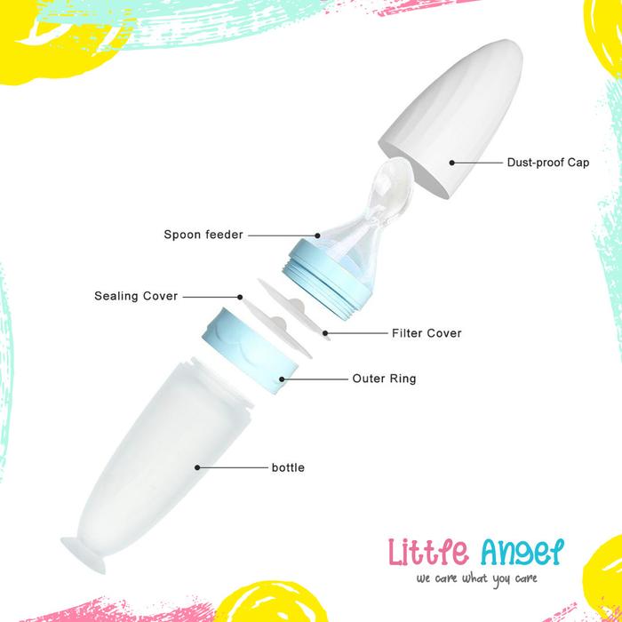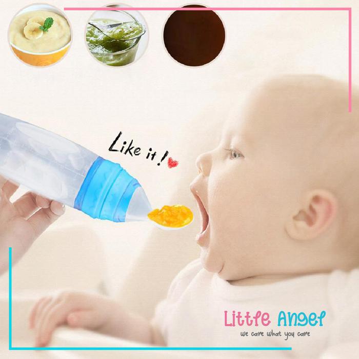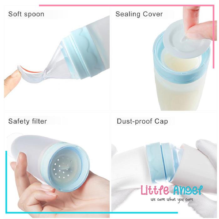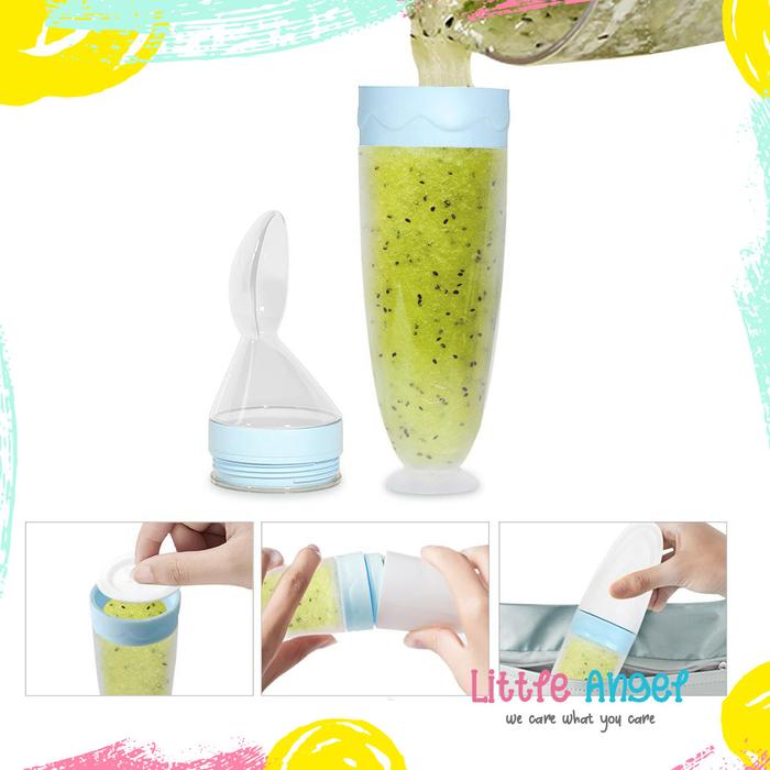Botol Sendok Makan Bayi Mpasi Silikon Food Anti Tumpah Aman Murah Baby Feeder Bottle Spoon Peralatan Biru - Hijau