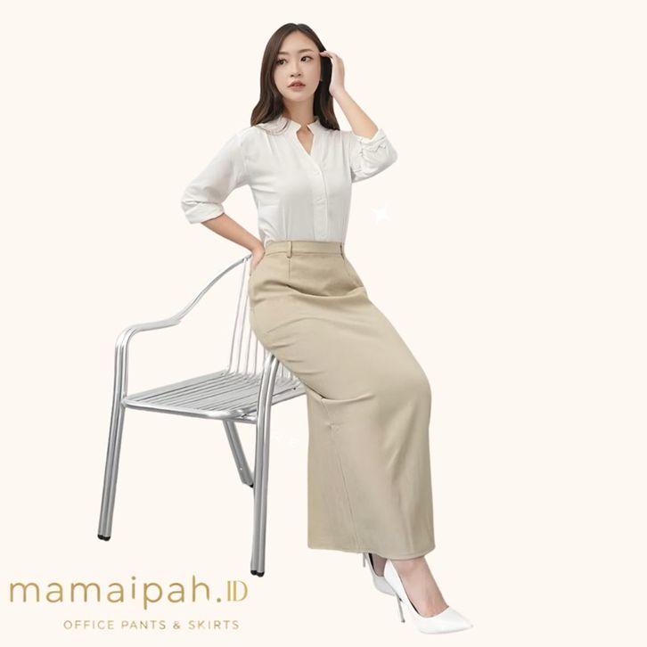 PREMIUM Rok Span Kerja Wanita Rempel Belakang Bahan Stretch Premium Pinggang Karet Sisi Samping Kancing Kait