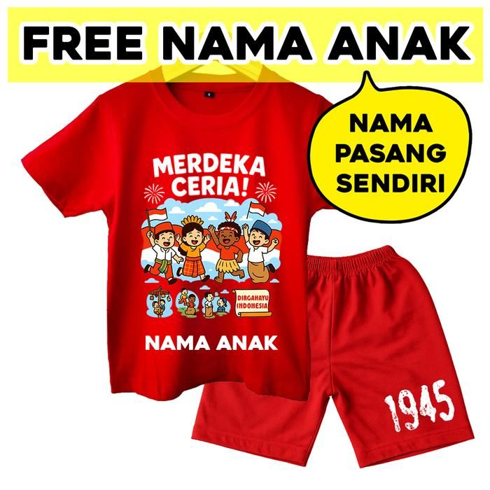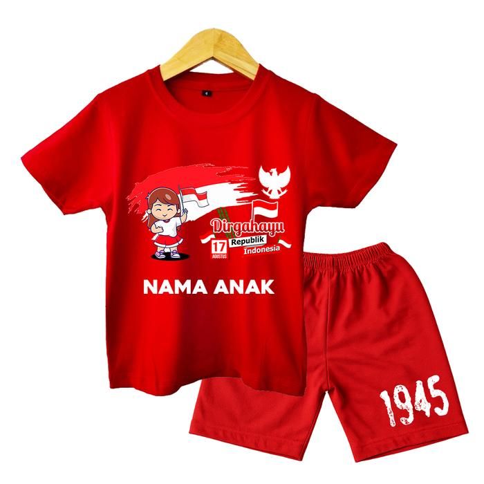 [ GRATIS NAMA ] Setelan Kaos Anak 17 Agustus Kemerdekaan Indonesia Merah - SET BENDERA CEWE MERAH, 2T