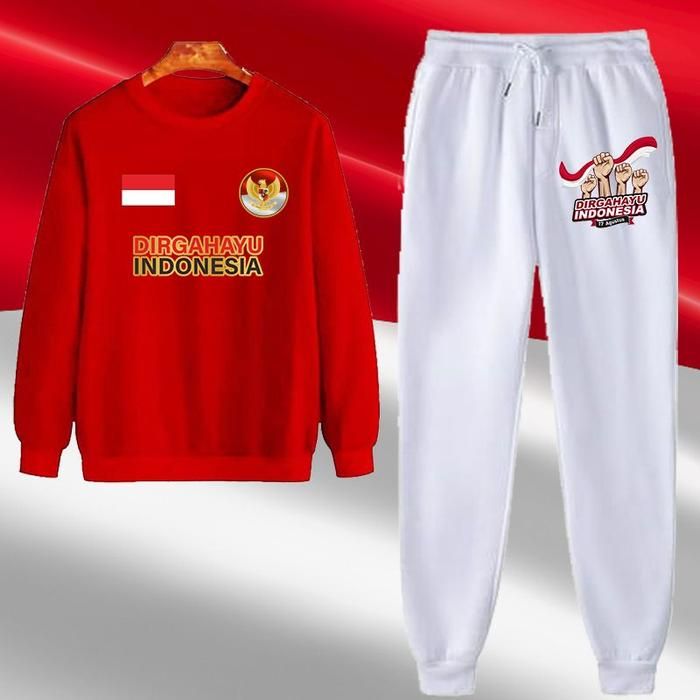 Empire Setelan Satu Set Baju dan Celana Agustusan Merah Putih Dirgahayu Indonesia - Set Jersey Panjang, M