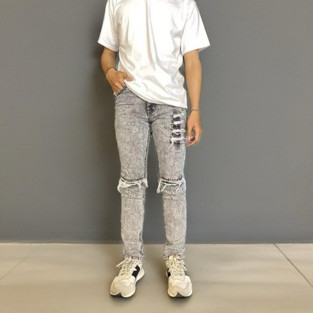 Celana Jeans Pria Sobek Lutut Ripped Pria Distro Premium Pcso-288 Destory™ Salvage