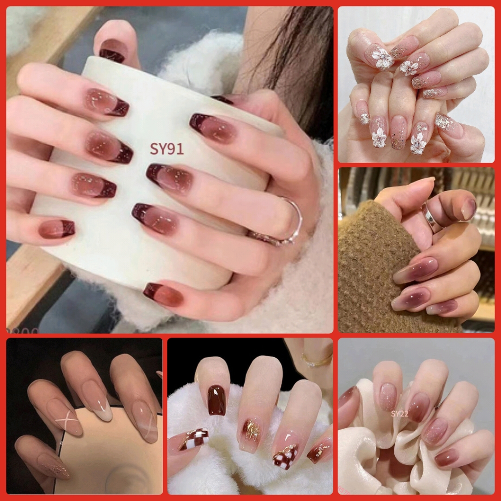 Kuku Palsu 24 Pcs 3D kuku palsu wedding kuku palsu + lem kuku palsu nail art + lem fake nail kuku nail art maroon