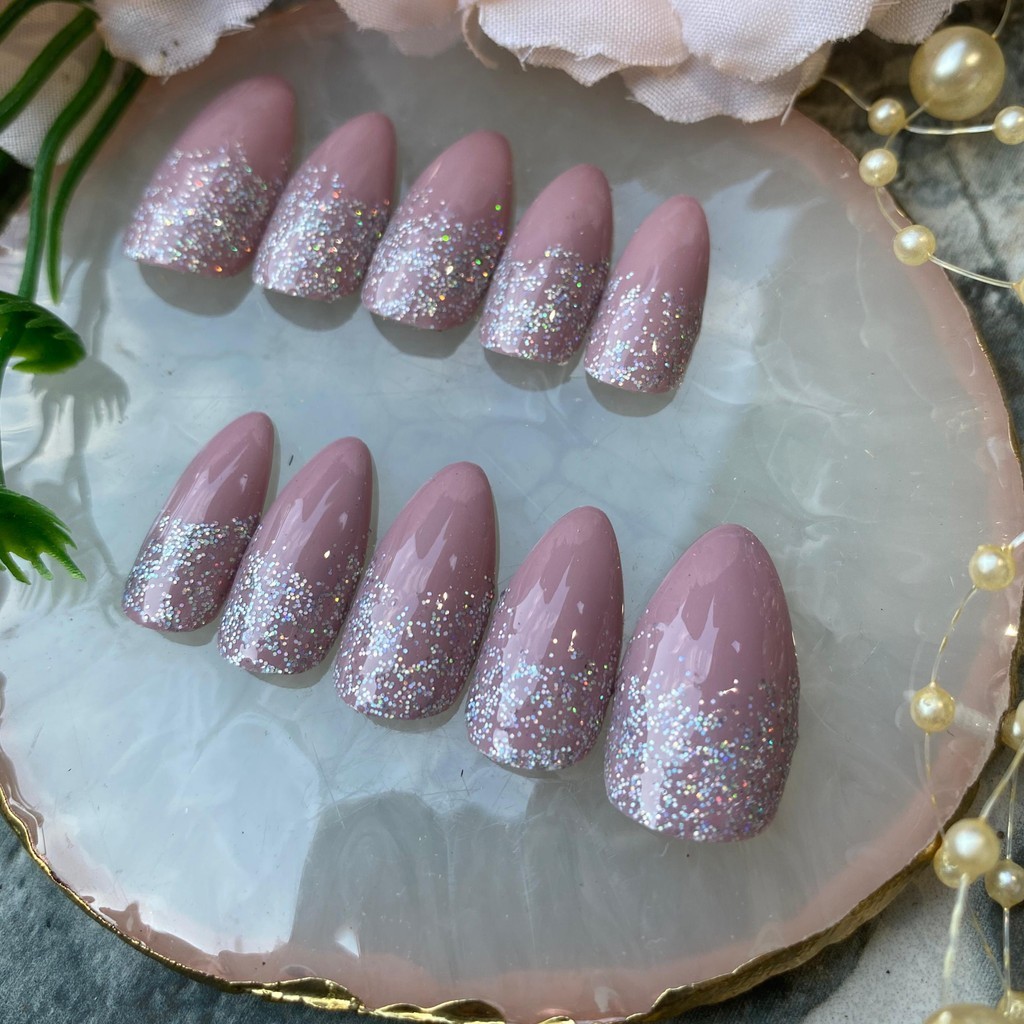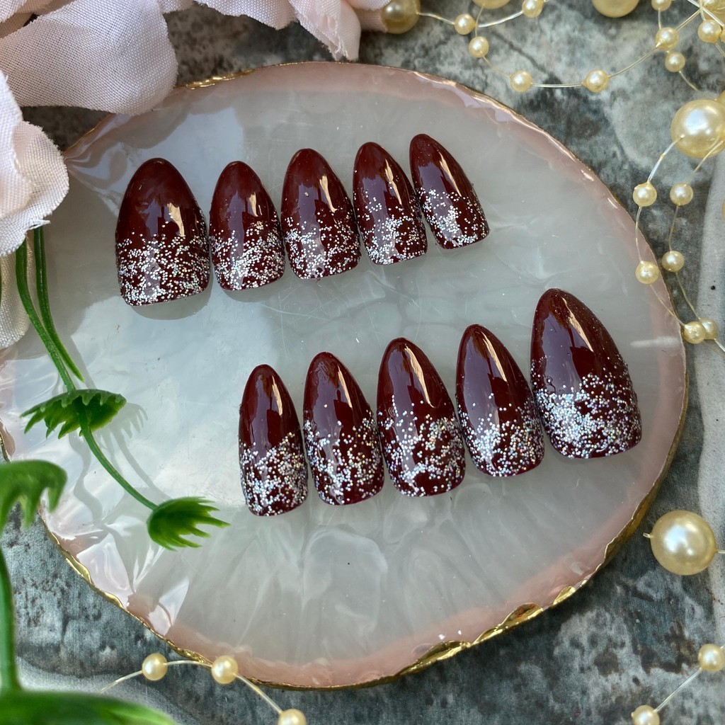 Kuku palsu + lem warna maroon| Press on nails maroon| Fake nails maroon glitter premium murah Vol A5