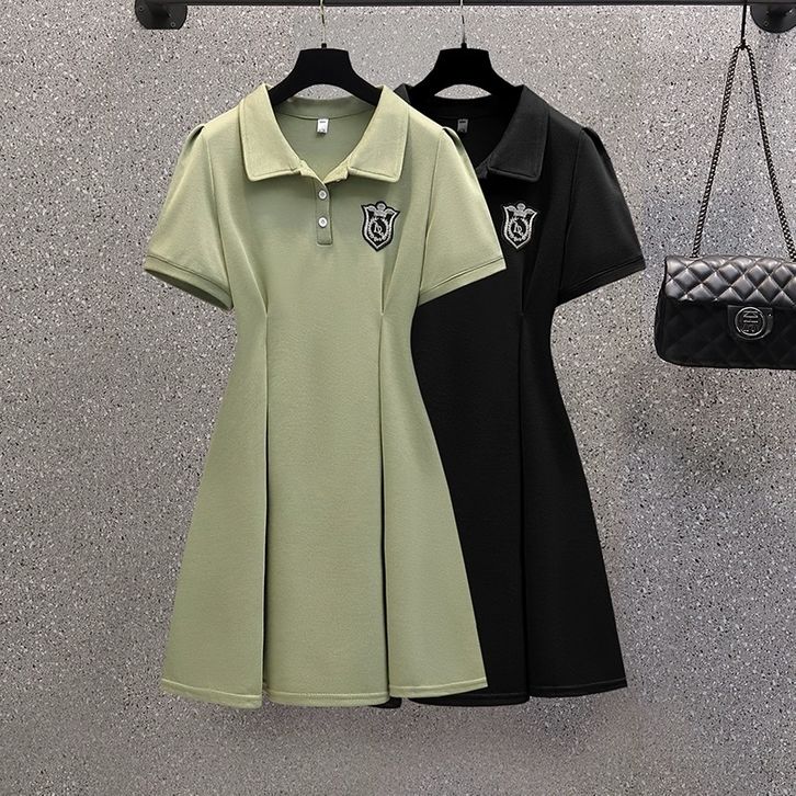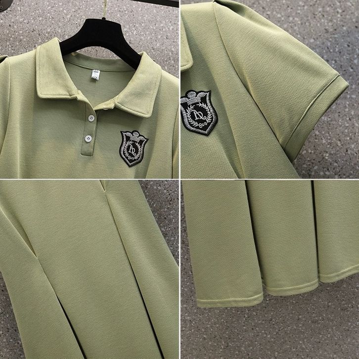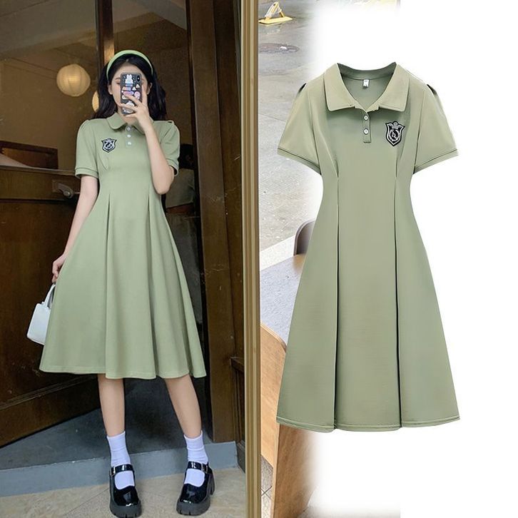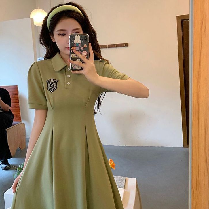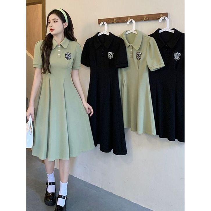keygirl polo long dress v neck a-line with tie ornament pakaian wanita gaya korea lengan pendek mode terbaru