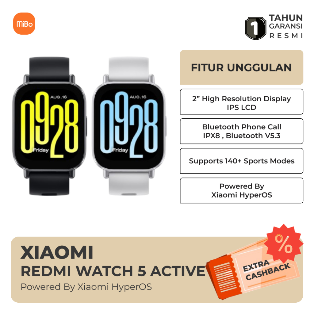 [Star]Xiaomi Redmi Watch 5 Active 2 Inch IPS LCD Xiaomi HyperOS IPX8 BT Call Garansi Resmi