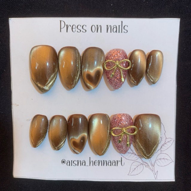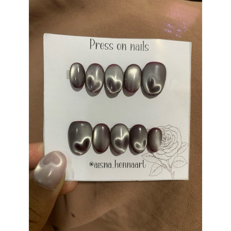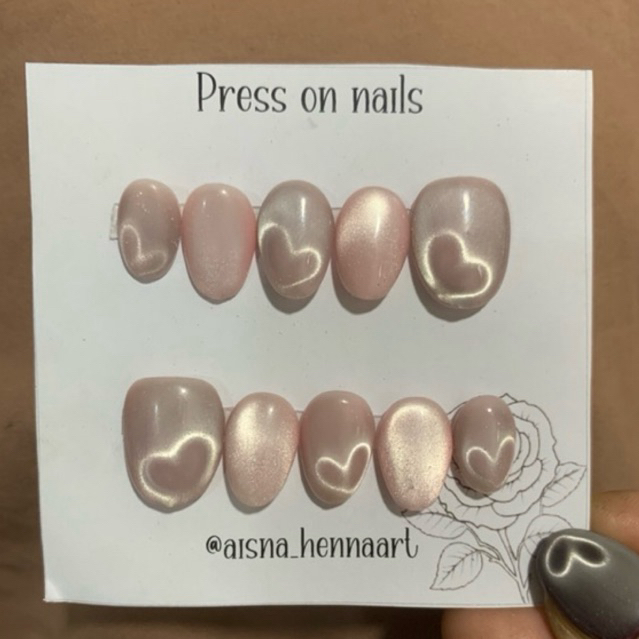 Fake Nails Cat Eye Love Free Lem Gel dan Lem Cair | Kuku Palsu Gopekceng Love Viral Elegan Cantik dan Murah Kekinian