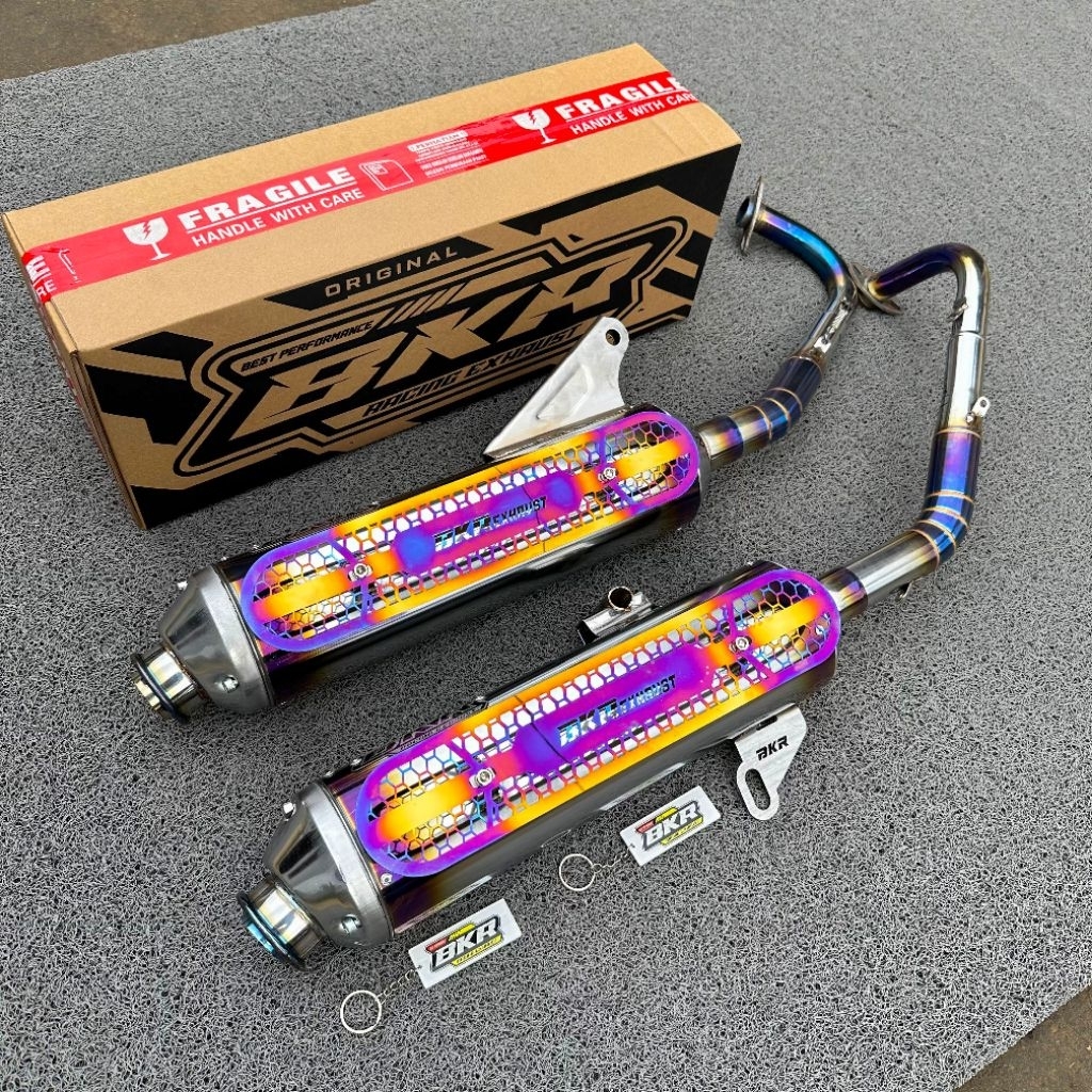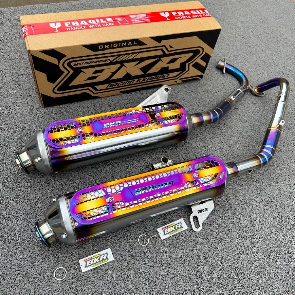 Knalpot Moncong Kenochi Standart Racing Stainels Blue Inlet Leher 28-38 Beat Vario Scoopy Nmax Aerox Mio