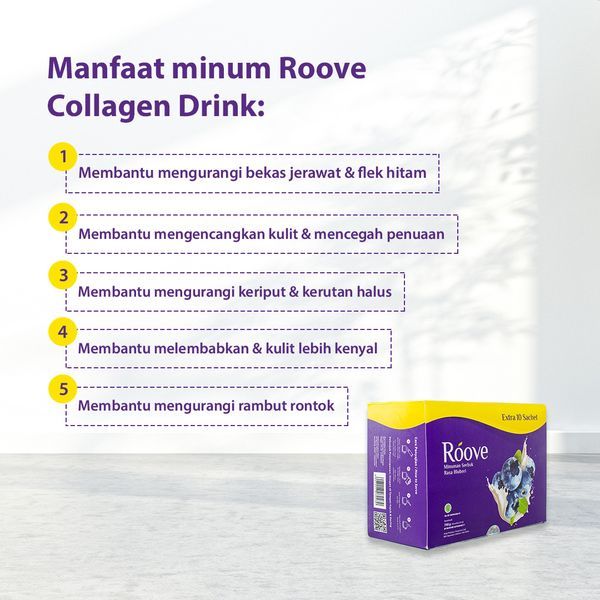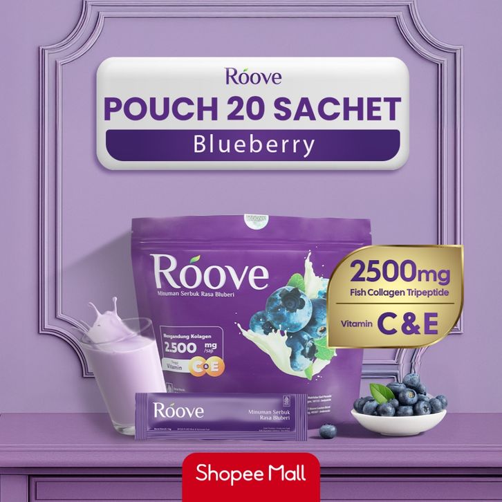 Roove Collagen Drink Blueberry Minuman Kolagen Suplemen Kecantikan Pencerah Kulit 20 Sachet