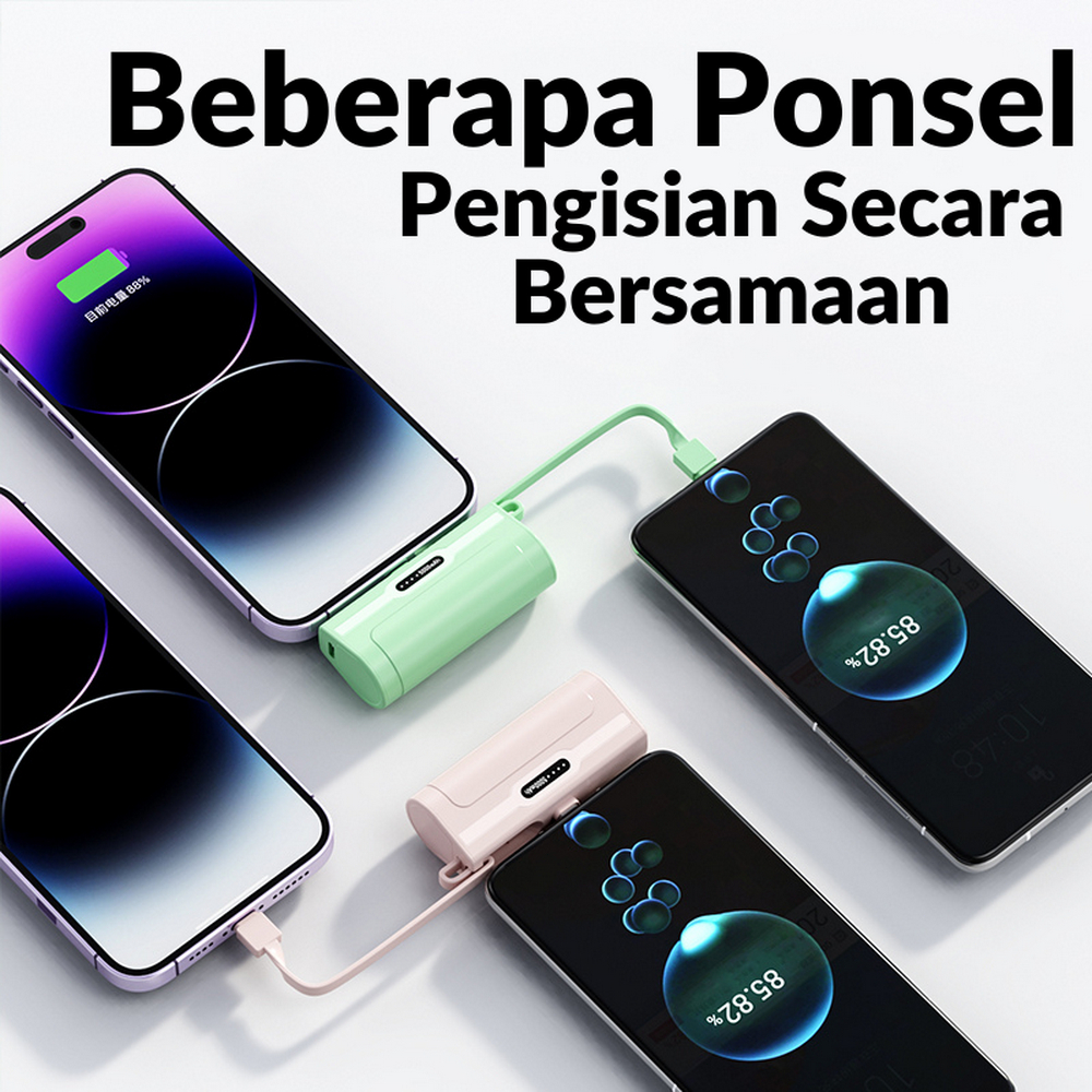 Powerbank Mini Macaron 5000mAh Dengan Kabel Type-C / Xiaomi iPhone Samsung Ori SKCBO