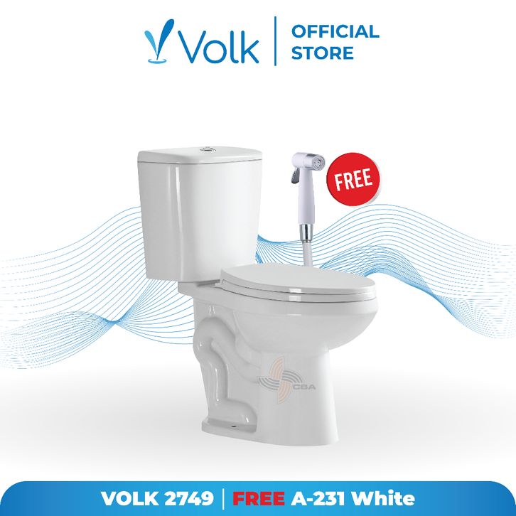 kloset duduk 1 set VOLK 2749 TWO PIECE TOILET WHITE + Packing Kayu + Jet Washer V147 White