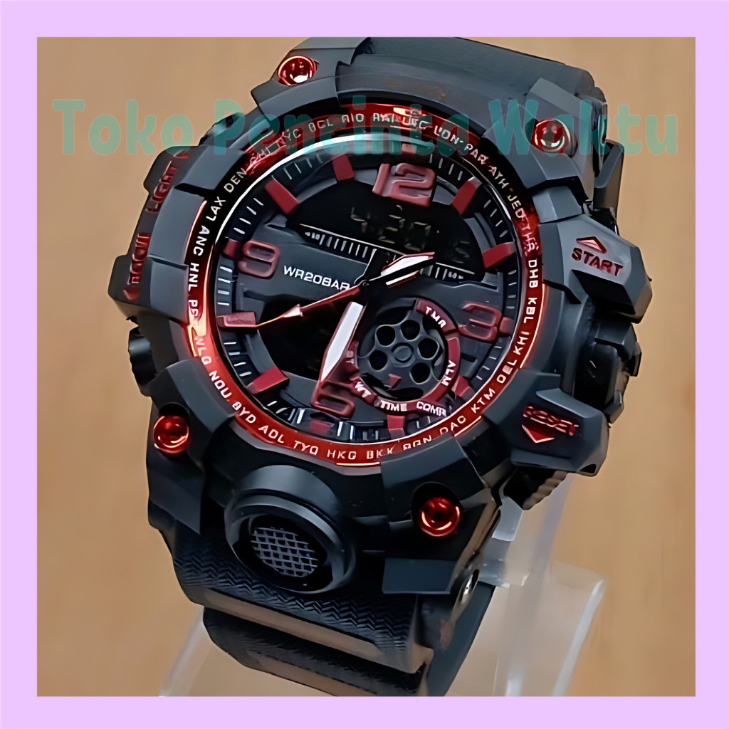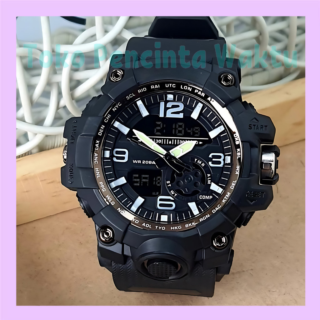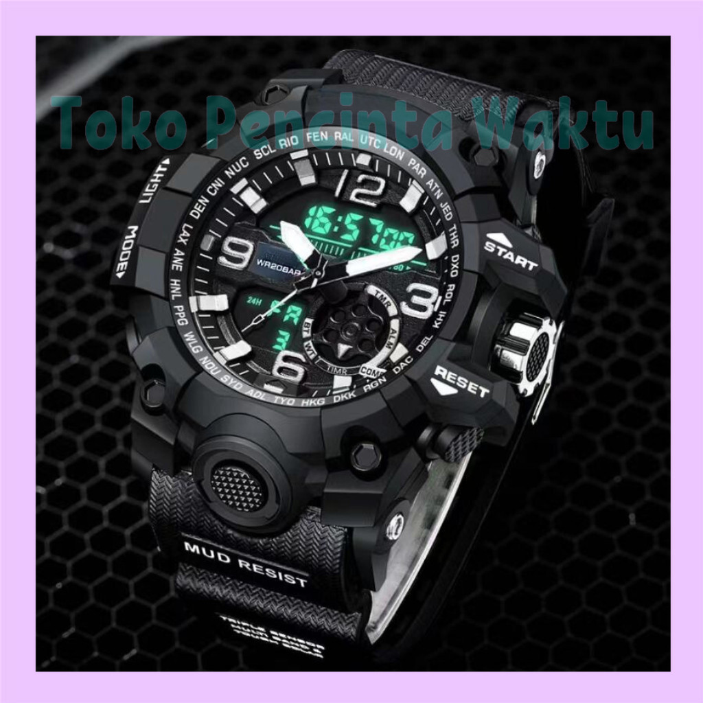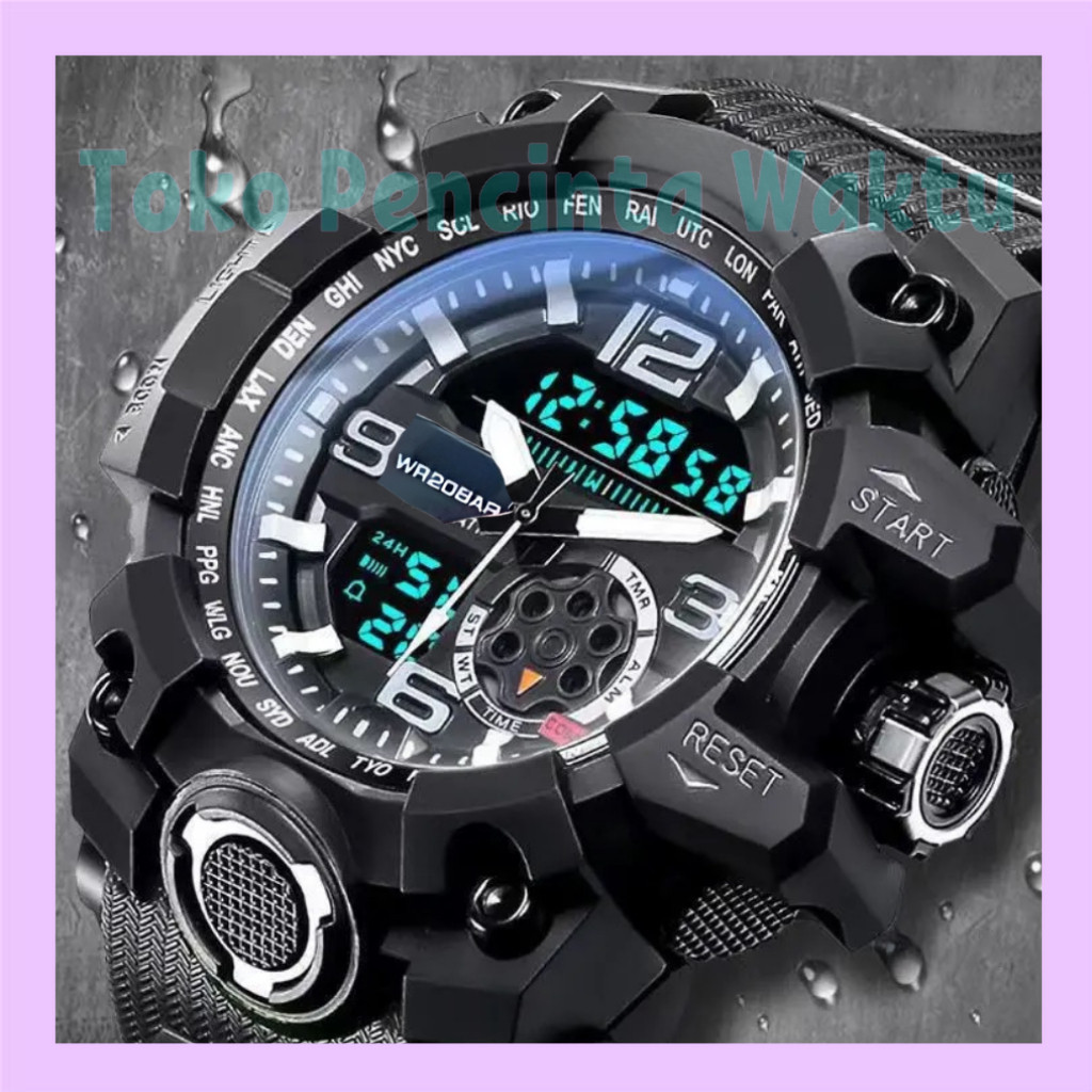 【 Tahan air 】 jam tangan pria anti air Jam tangan olahraga untuk pria Tahan air dan dual time zone