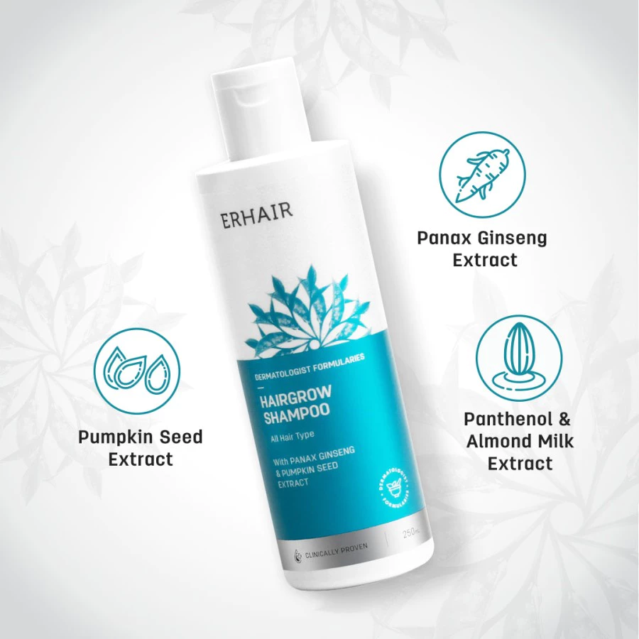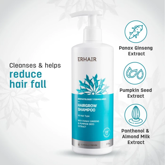 ERHAIR Hairgrow Shampoo with Panax Ginseng & Pumpkin Seed Extract 100ml/370ml - Sampo Rambut Rontok