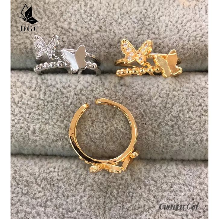 Perhiasan Wanita Aksesoris Cincin Titanium Wanita Anti Karat Anti Luntur Elegant Berlian Kupu Aksesoris Terbaru Cincin E